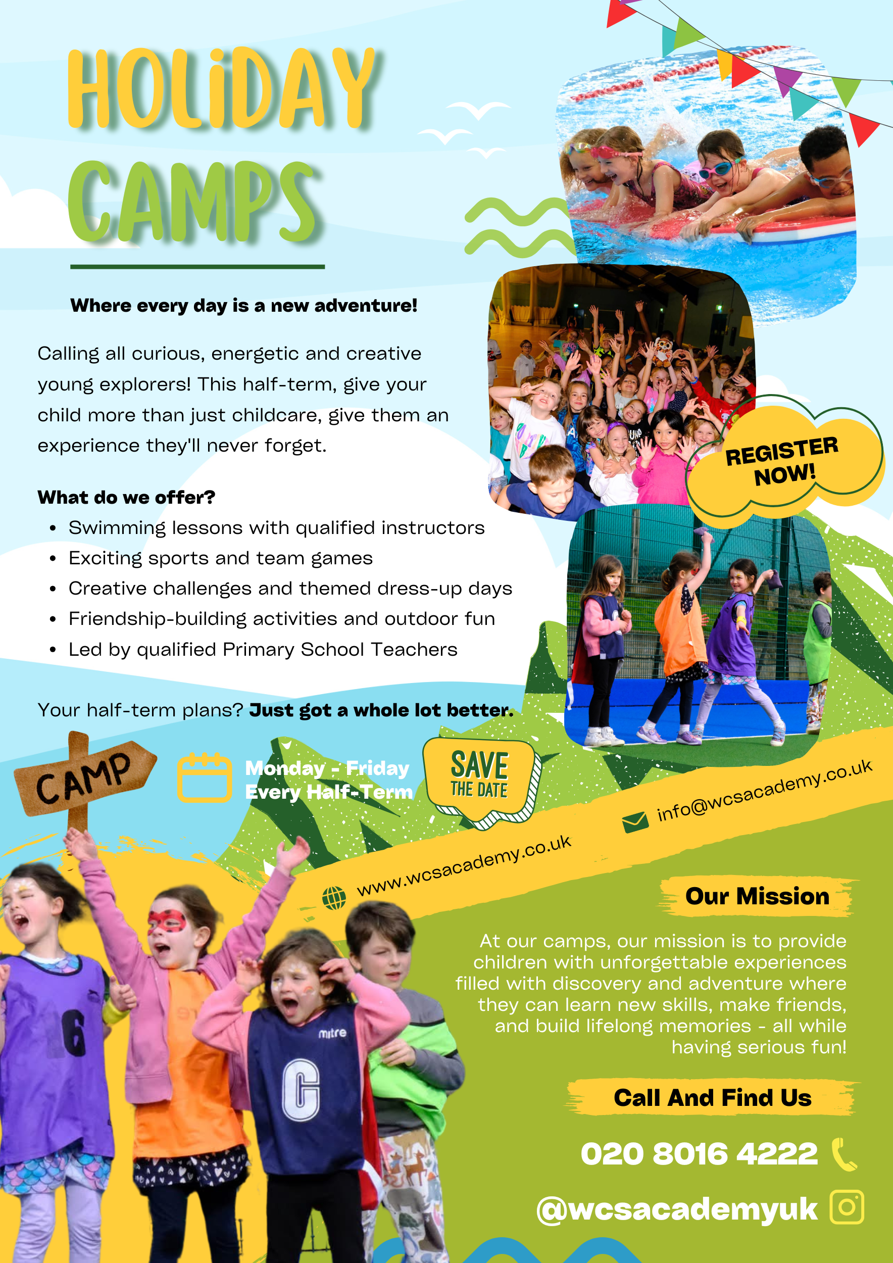 Looking for a fun way to keep your kids active and entertained this half-term? Our Holiday Camps are the perfect solution for children aged 5 - 12 to dive into fun and make new friends!